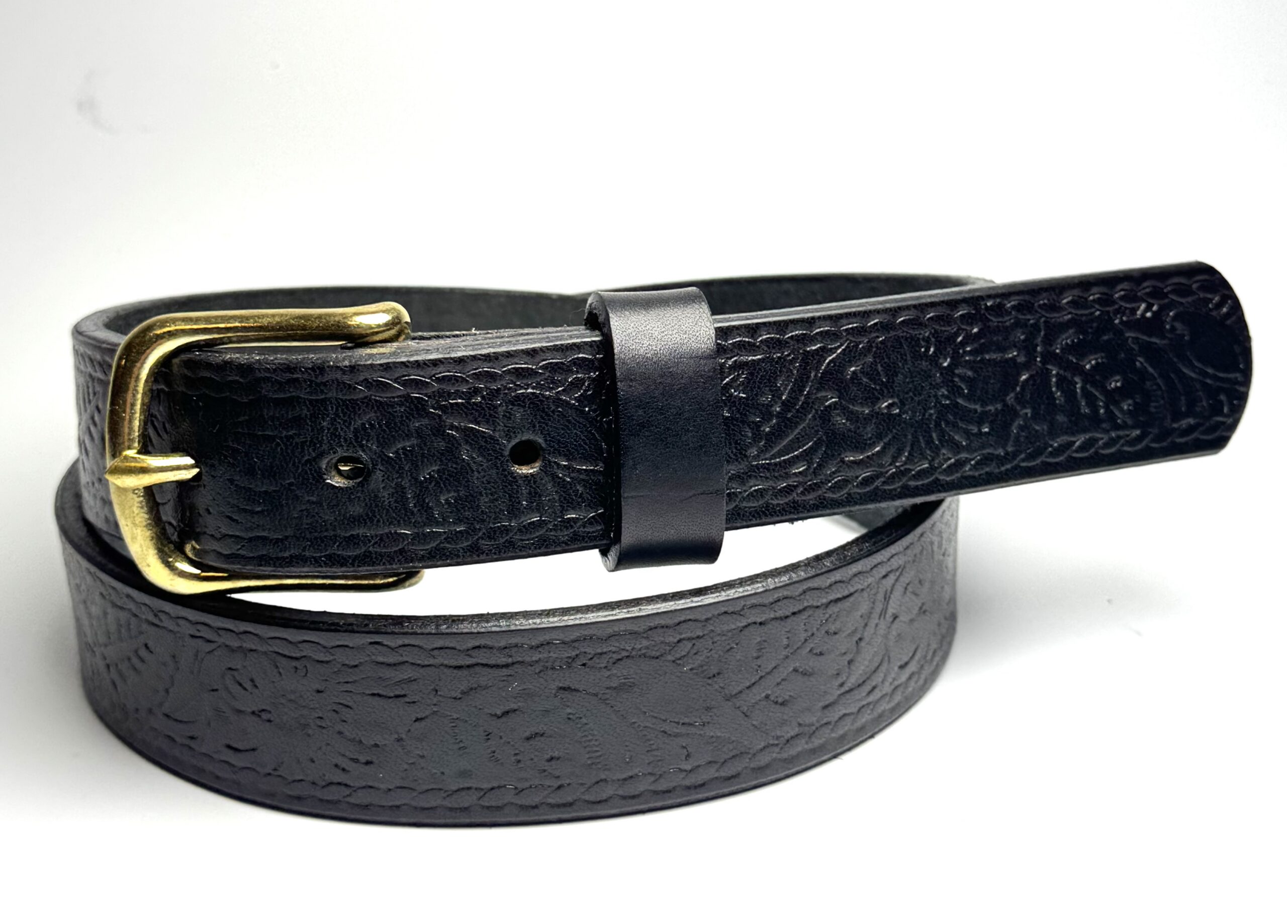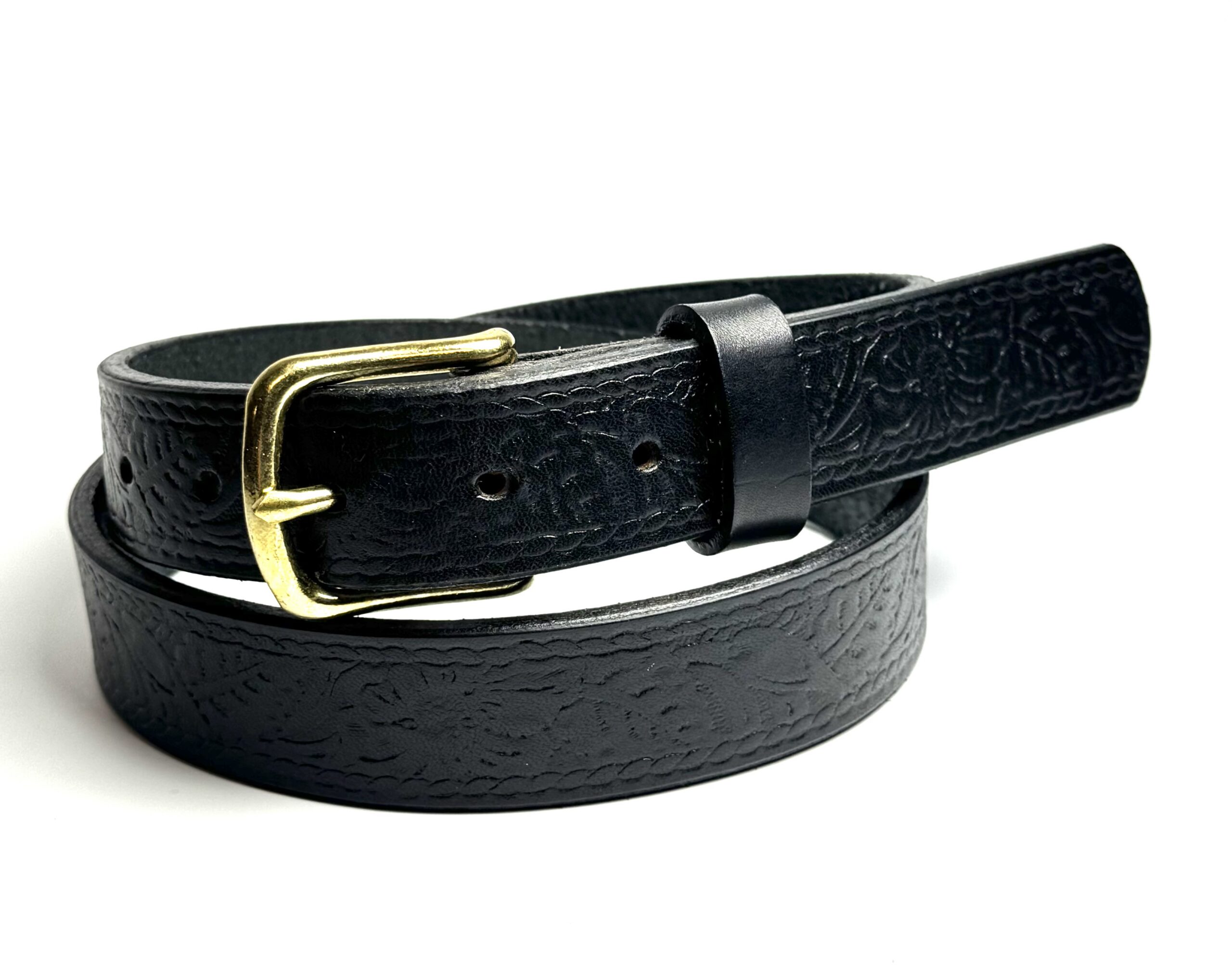 The Black Floral Leather Belt brings a bold mix of classic style and detailed craftsmanship. We start with full‑grain leather, chosen for its strength, natural feel, and long‑lasting durability. The hand‑tooled floral pattern adds depth and character, giving the belt a unique look that stands out without feeling flashy.