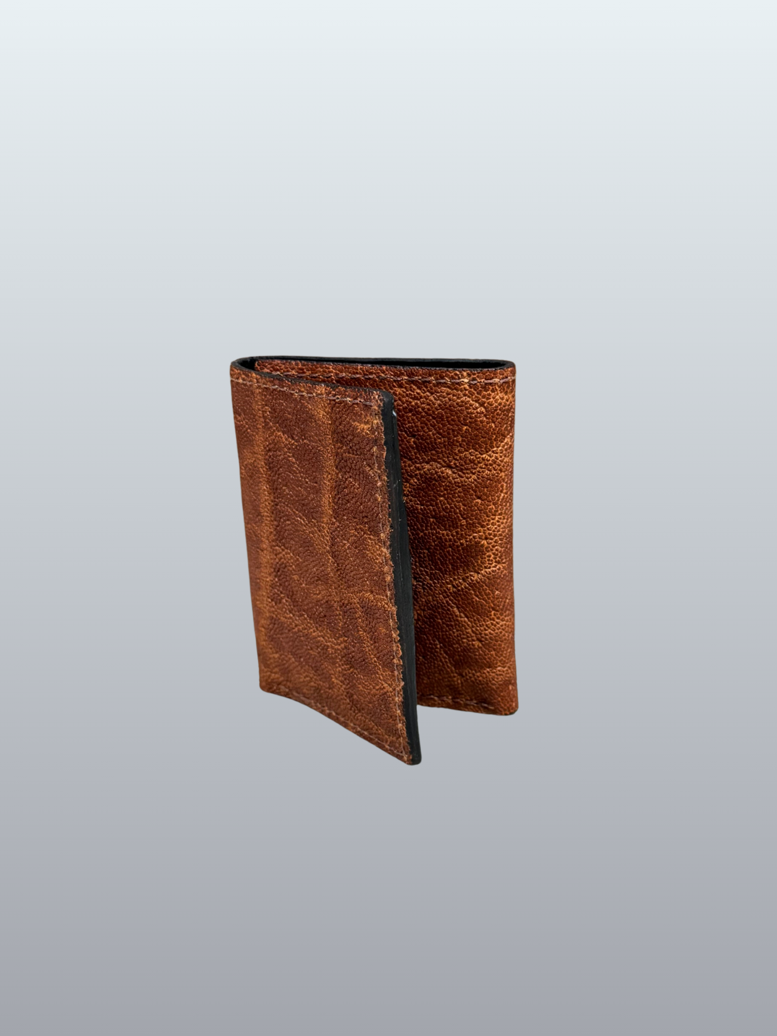 The Elephant Havana Leather Trifold blends exotic texture with the dependable quality your customers expect from Amish craftsmanship. We craft this wallet from genuine elephant leather, chosen for its durability, natural grain, and unmistakable character. The rich Havana finish adds depth and warmth, giving the wallet a bold, refined look. Because of its unique texture, each trifold carries its own personality and visual appeal.