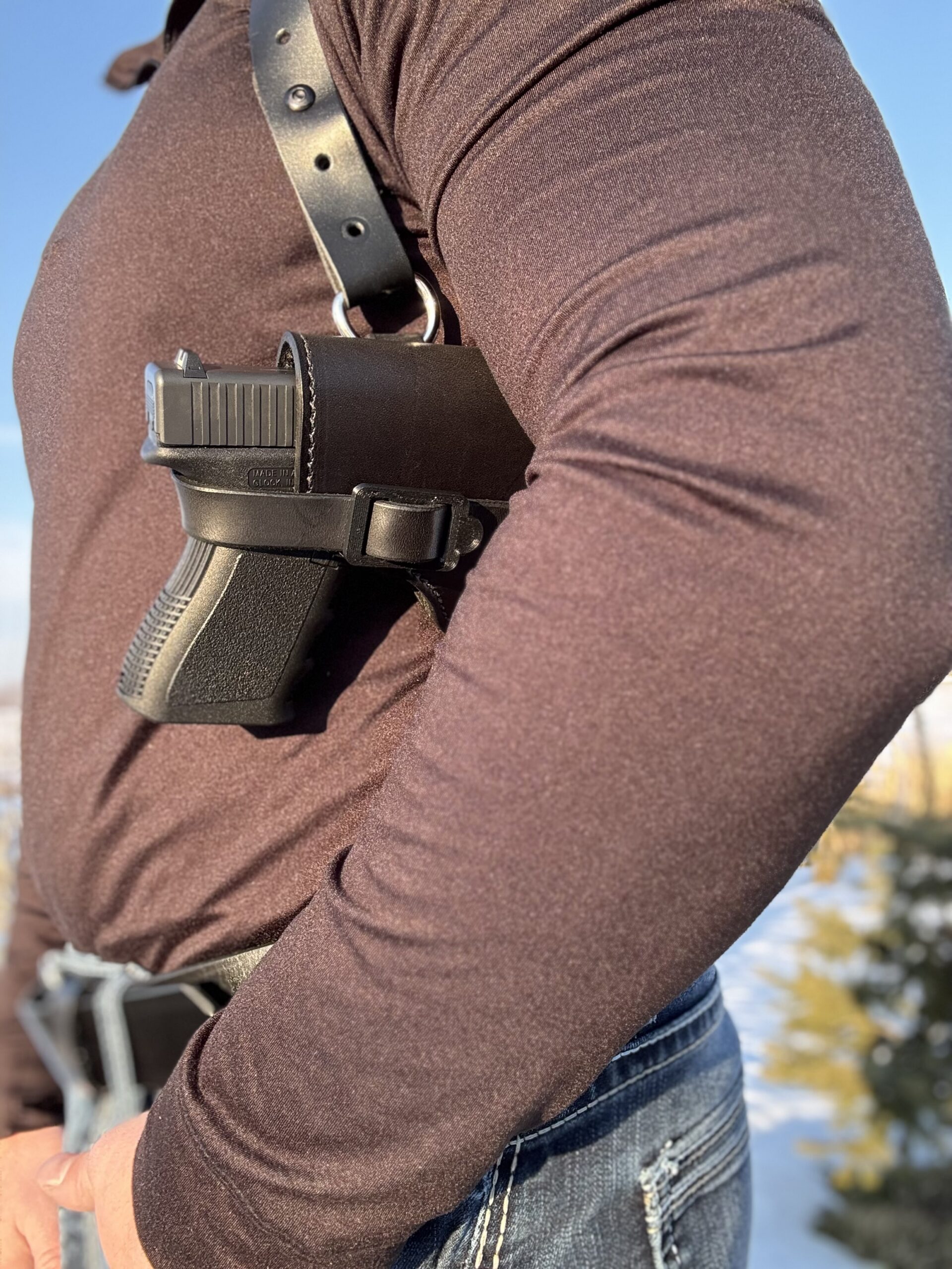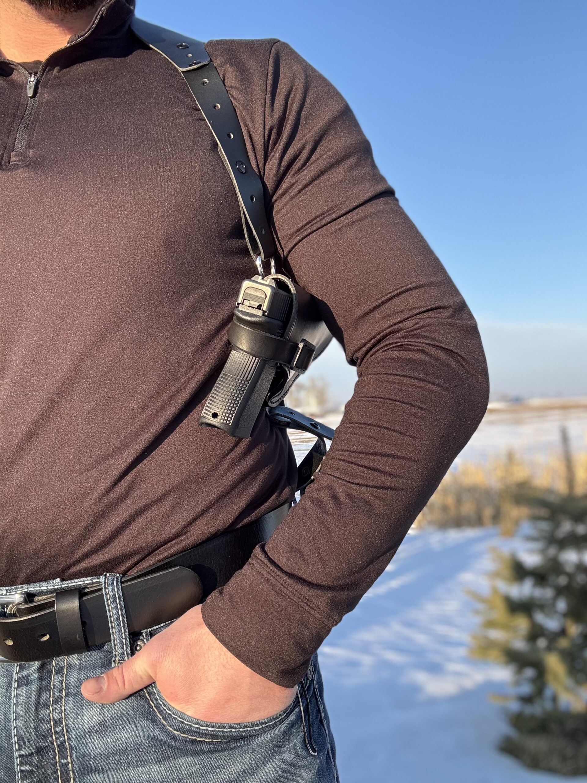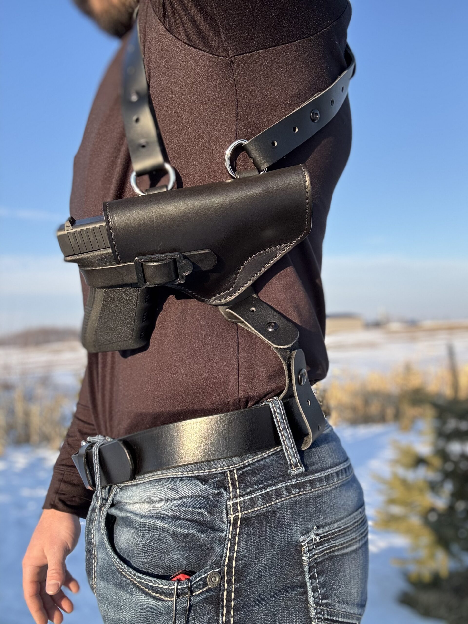 The Glock Leather Shoulder Holster is built for comfort, security, and everyday carry performance.