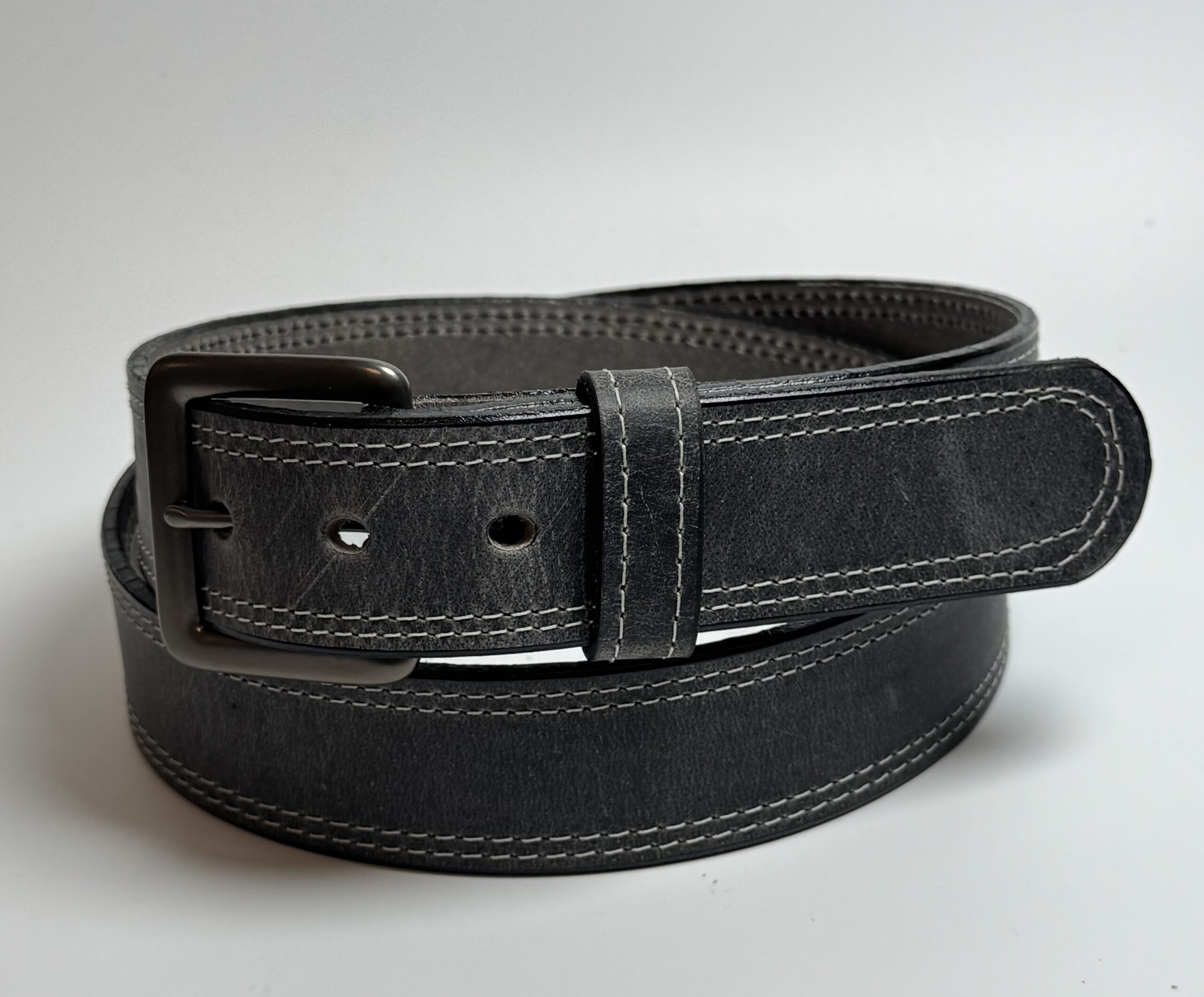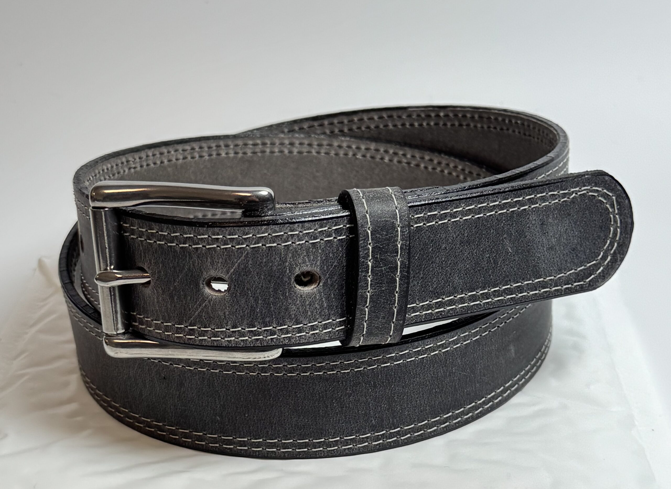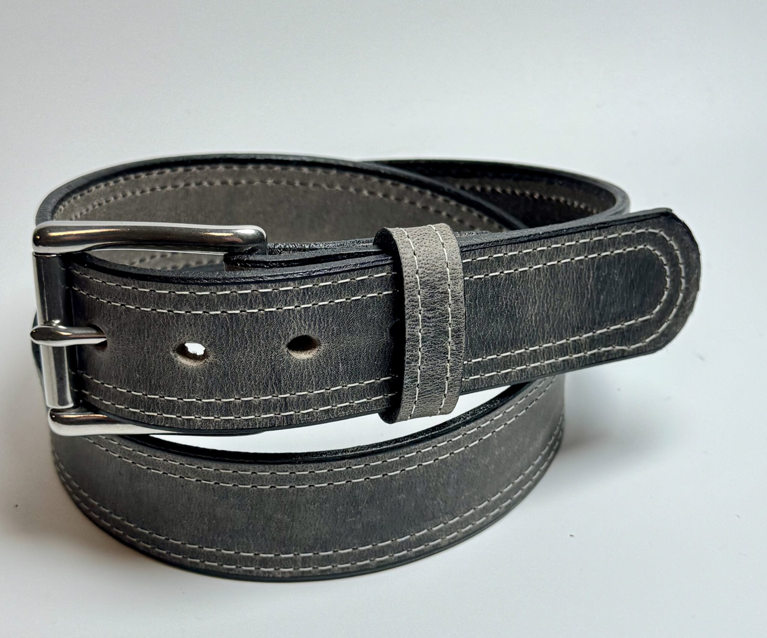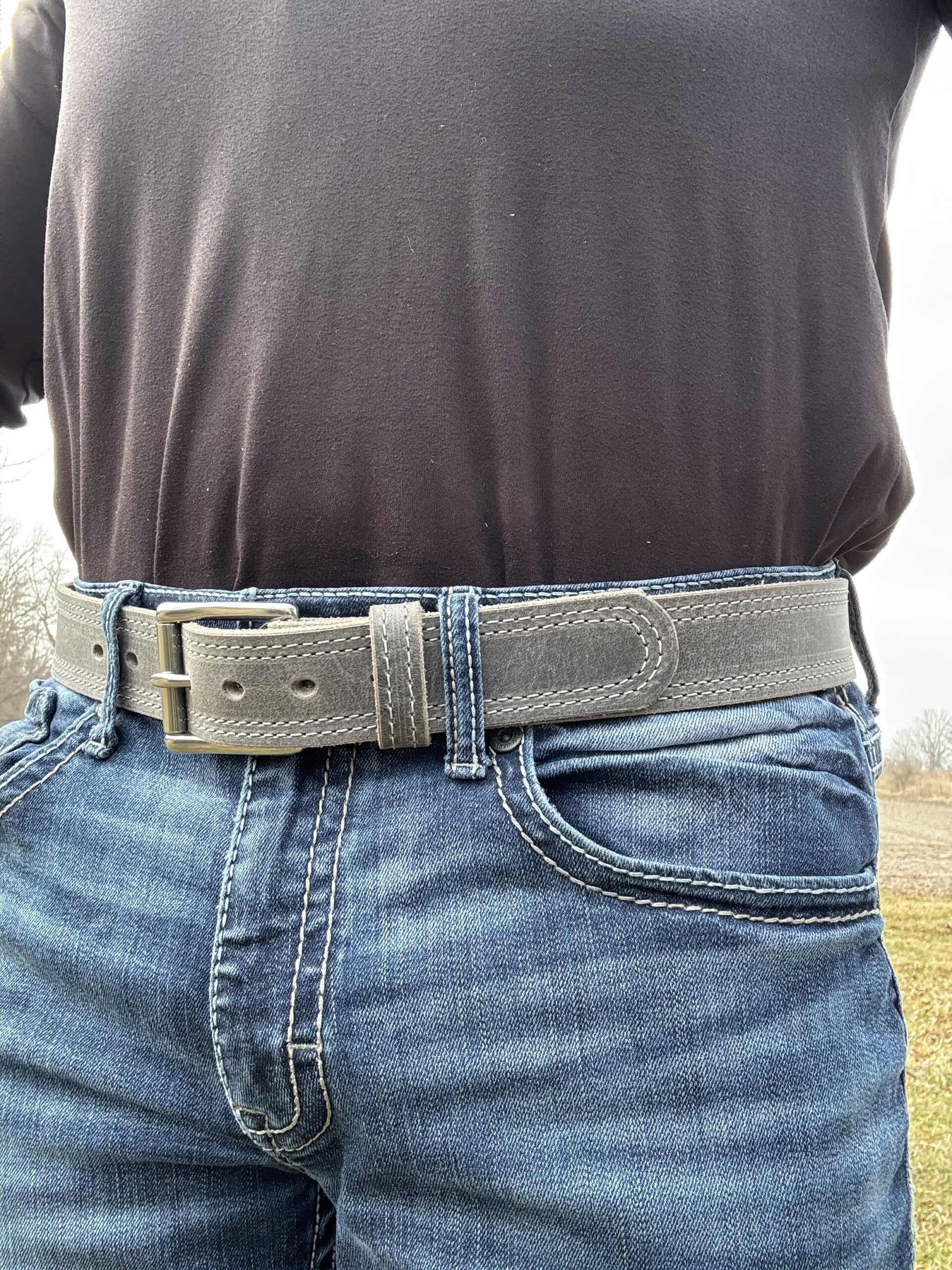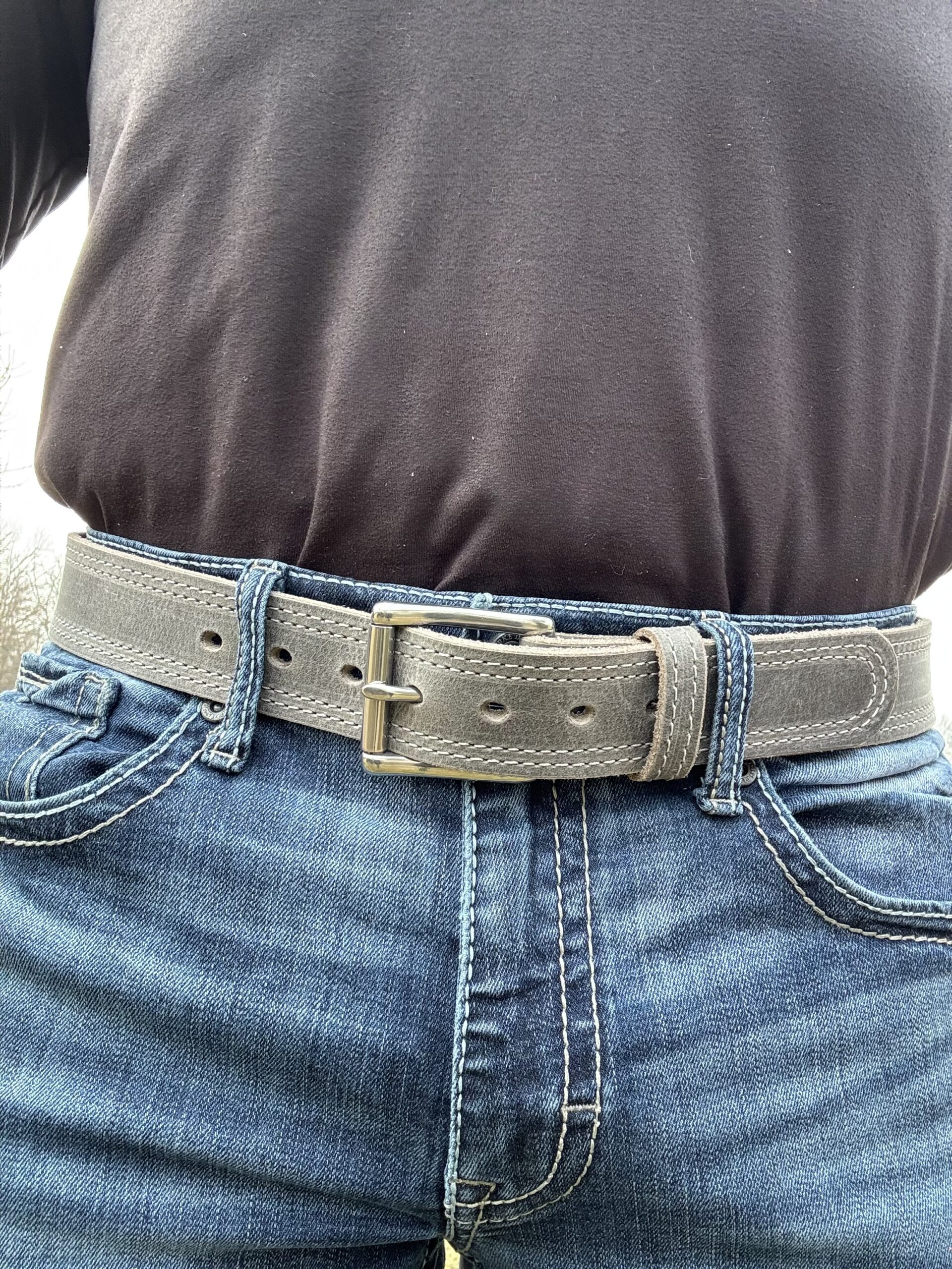 We craft this Grey Double Stitch Leather Belt from premium full-grain leather. Because of this quality leather, the belt feels thick, sturdy, and reliable from the moment you put it on. Over time, the leather develops character and a natural patina that makes the belt look even better with age. The unique grey finish gives it a bold yet versatile appearance that works perfectly with jeans, work pants, or casual dress wear.
