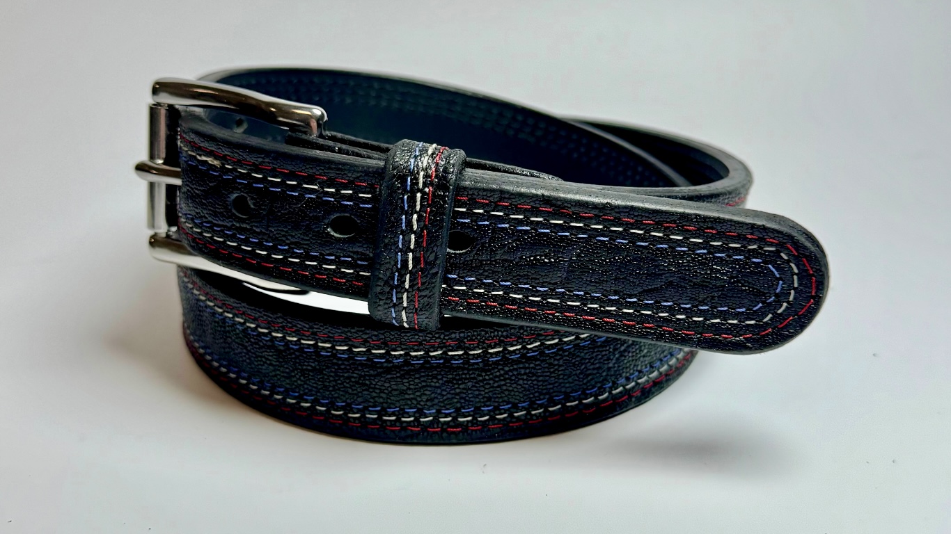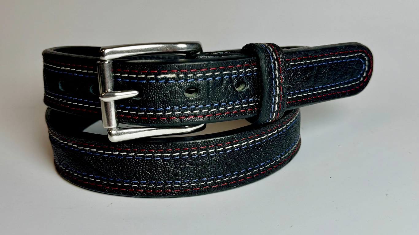 The Patriot elephant leather belt pairs well with jeans and casual pants. It works for daily wear and special occasions. If someone is looking for a patriotic belt made from real elephant leather, this is what they expect from Lambright Leather Company.