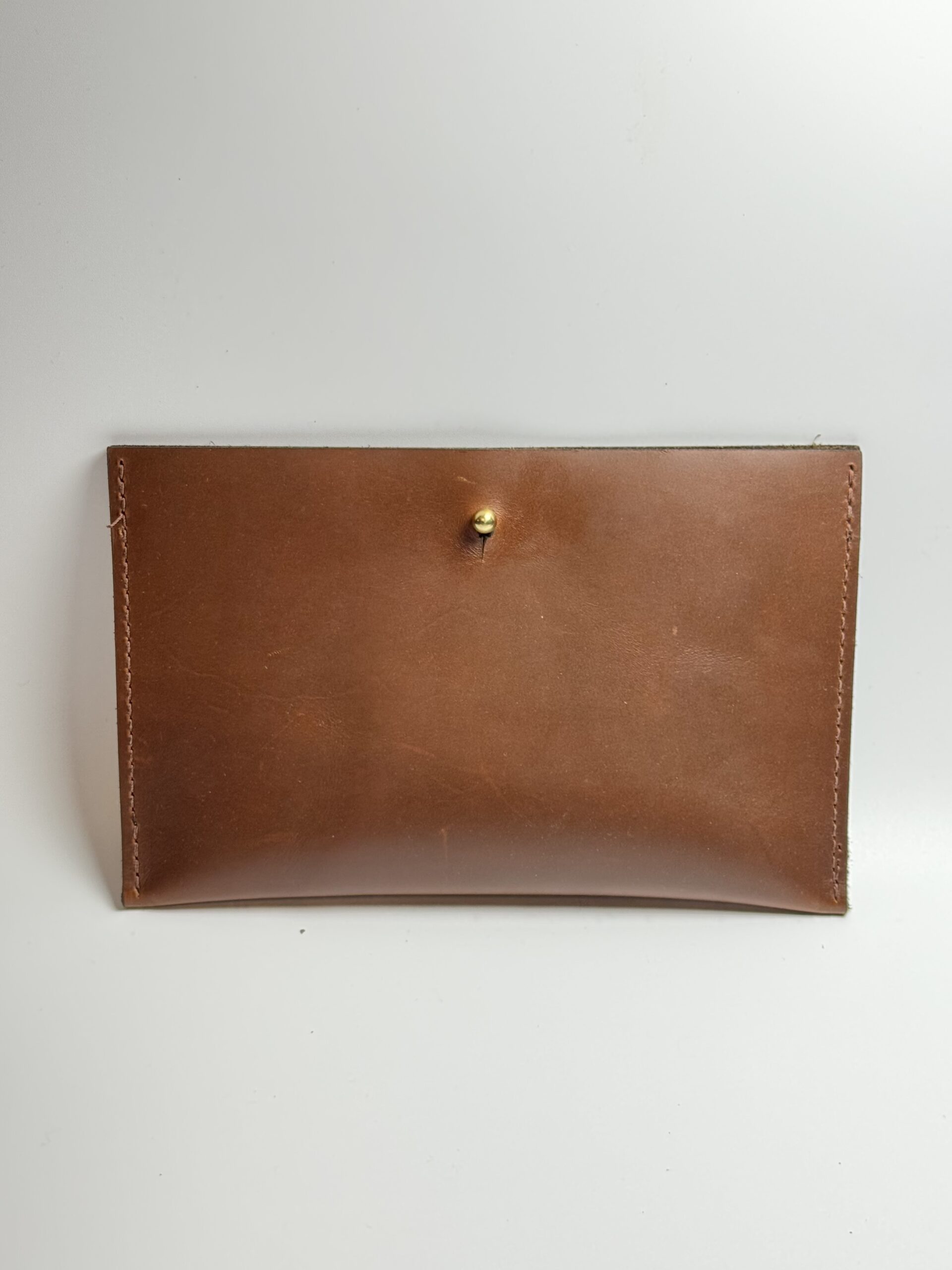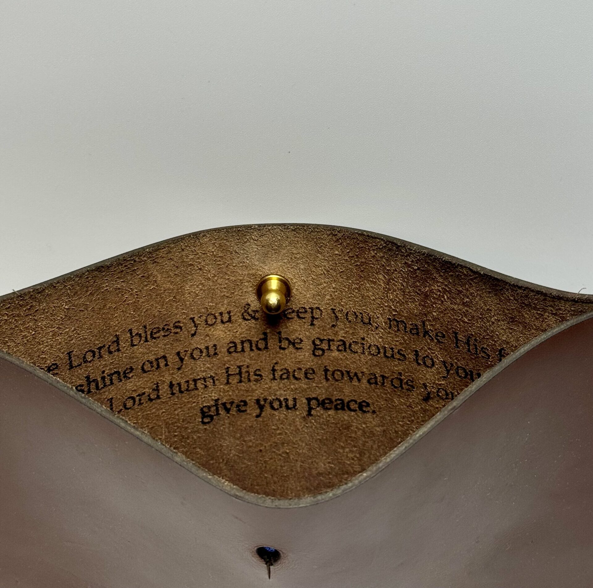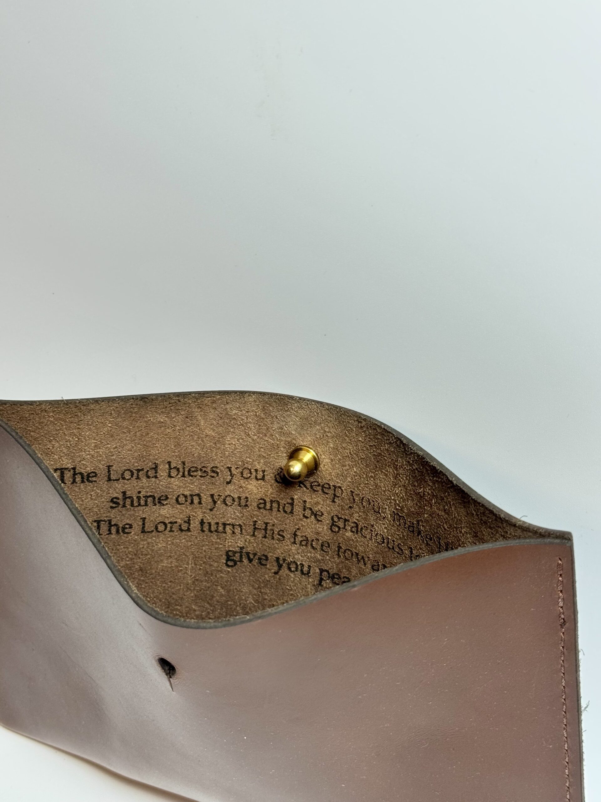 Each pouch is made from full‑grain leather that ages well and gains character over time. The soft suede interior feels smooth and natural. A solid brass button keeps the pouch closed and secure. The stitching is done by hand, giving the pouch strength and a clean, classic look. Because the leather is natural, every Personalized Leather Gift Pouch has its own unique marks and color tones.