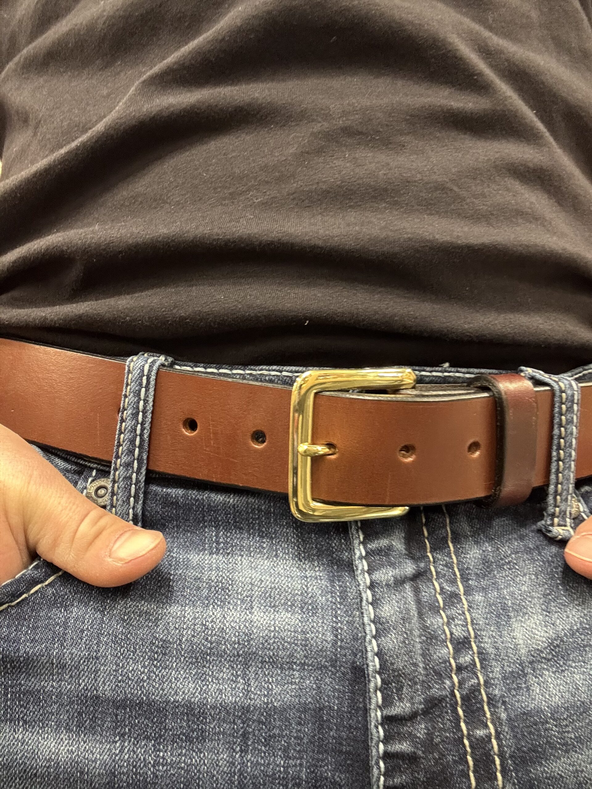 The buckle attaches with reinforced stitching for extra durability. The edges are hand‑finished for a smooth, comfortable fit. Nothing about this belt feels cheap or rushed. Every detail reflects the care and skill of the craftsman who made it.