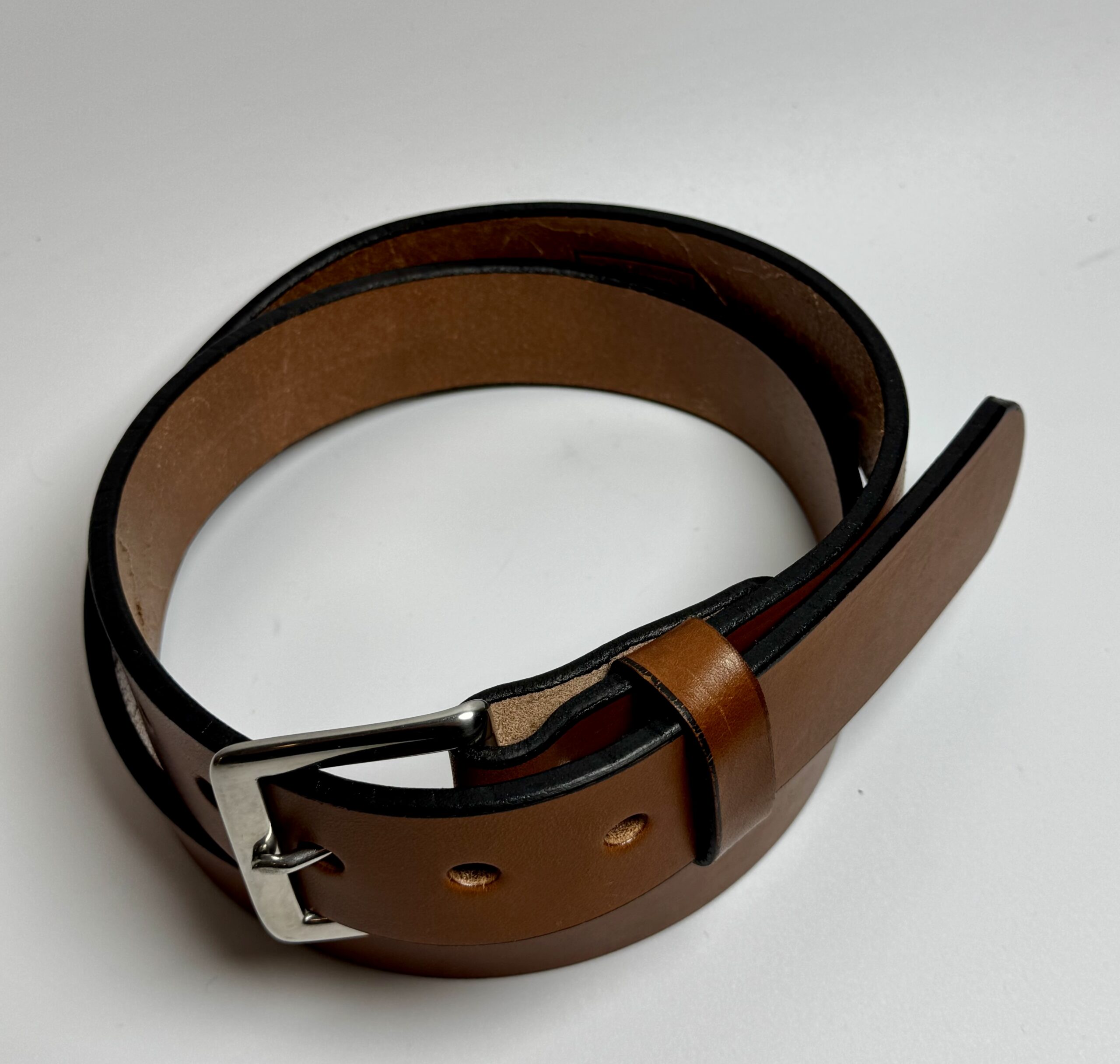 Unlike many mass-produced belts, this one is built using Chicago screw construction, which allows the buckle to be removed or replaced if needed. This feature also makes the belt easy to customize or adjust in the future.